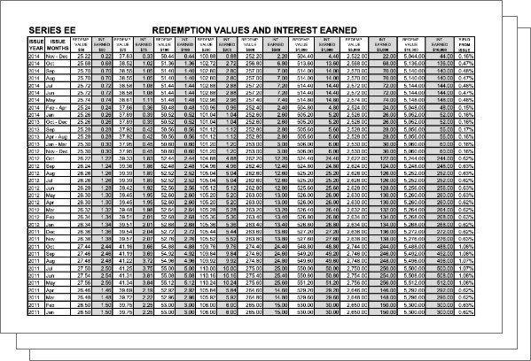 Redemption tables allow you to find the values and interest earned for Series EE savings bonds, Series E savings bonds, Series I savings bonds, and Savings Notes issued as far back as 1941.